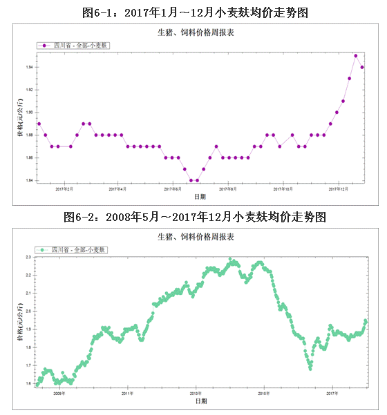2)小麦麸:全年呈现震荡向上走势,较上年的“一波三折”平稳了许多。最高1.95元/公斤(12月第3周),最低1.84元/公斤(6月下旬),全年均价1.88元/公斤,同比上涨3.87%,各月均价同比均呈上涨之势。