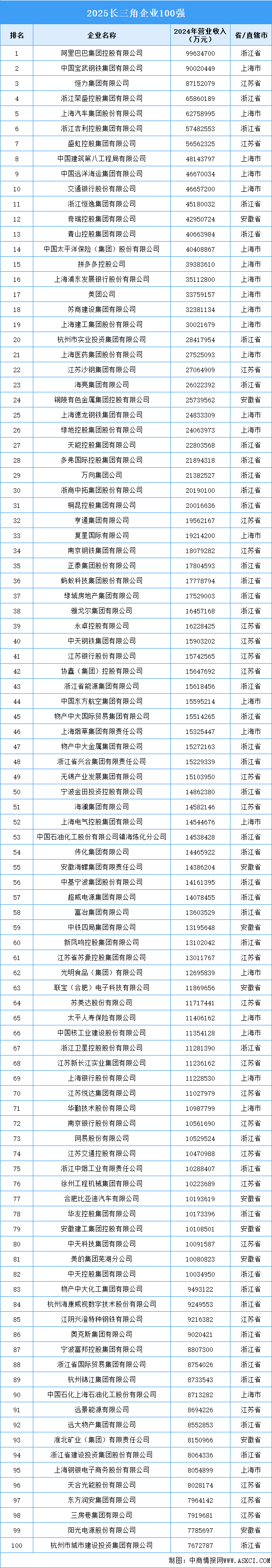 中商情报网讯:12月9日,2024年长三角企业100强榜单正式公布。今年入围门槛为792.4亿元,较上年的767.3亿元提升3.27%。百强企业营业总收入首次突破22万亿元,达到22.15万亿元,同比增长3.63%;其中营收超千亿企业数量增至85家。净利润总额达1.12万亿元,同比增长9.8%;总资产规模突破65万亿元,同比增长7.5%至65.1万亿元。这些龙头企业深度布局于高端制造、信息技术、金融贸易、新能源汽车等现代产业体系,以上汽、阿里巴巴、恒力集团等为代表。