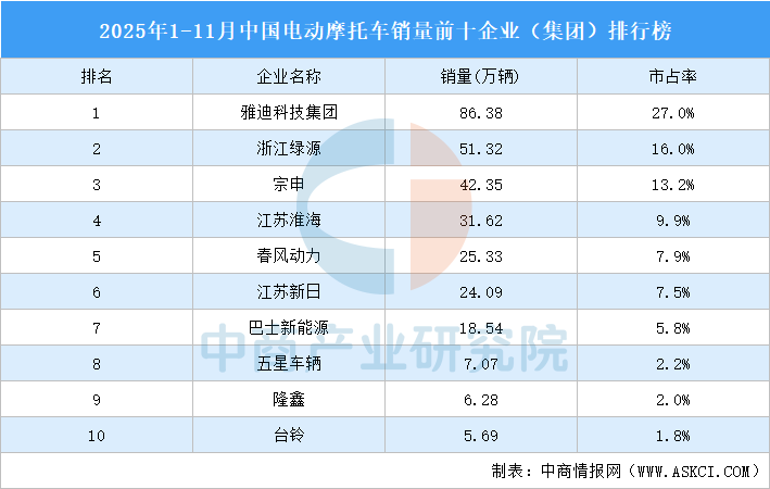 2025年1-11月中国电动摩托车产销情况:销量同比微增(图)