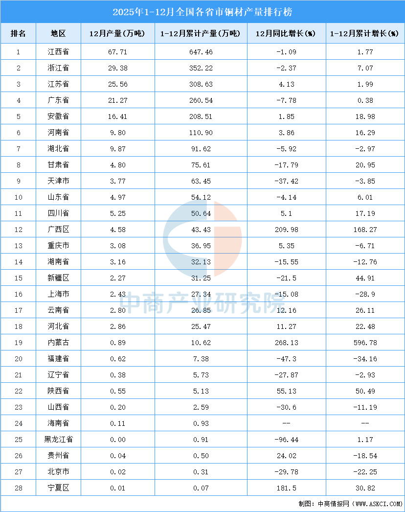 更多资料请参考中商产业研究院发布的《中国铜材行业市场前景及投资机会研究报告》,同时中商产业研究院还提供产业大数据、产业情报、行业研究报告、行业白皮书、行业地位证明、可行性研究报告、产业规划、产业链招商图谱、产业招商指引、产业链招商考察&推介会、“十五五”规划等咨询服务。
