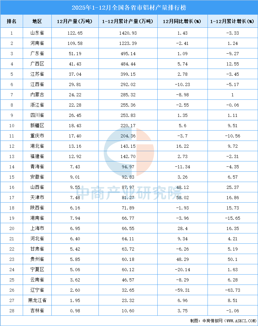 更多资料请参考中商产业研究院发布的《中国铝材行业市场前景及投资机会研究报告》,同时中商产业研究院还提供产业大数据、产业情报、行业研究报告、行业白皮书、行业地位证明、可行性研究报告、产业规划、产业链招商图谱、产业招商指引、产业链招商考察&推介会、“十五五”规划等咨询服务。
