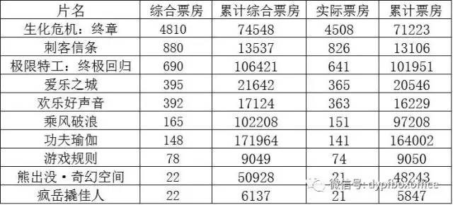 根据初步统计,周二大盘报收7640万;;#欢乐好声音#392万,累计1.71亿。#爱乐之城#395万,累计2.16亿;#生化危机:终章#4840万,累计7.45亿;#刺客信条#880万,累计1.35亿;#极限特工:终极回归#690万,累计10.64亿;#爱乐之城#395万,累计2.16亿。
