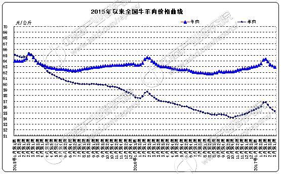 全国牛肉平均价格62.96元/公斤,比前一周下降0.3%,同比下降1.2%。河北、辽宁、吉林、山东和河南等主产省份牛肉平均价格55.62元/公斤,比前一周下降0.1%;上海、浙江、福建、广东和江苏等省份平均价格74.11元/公斤,比前一周下降0.2%。全国羊肉平均价格55.31元/公斤,比前一周下降0.4%,同比下降4.1%。河北、内蒙古、山东、河南和新疆等主产省份羊肉平均价格52.28元/公斤,比前一周下降0.3%;上海、浙江、福建、江西和广东等省份平均价格62.1元/公斤,比前一周下降0.7%。