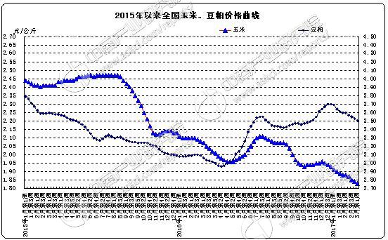 全国玉米平均价格1.83元/公斤,比前一周下降0.5%,同比下降11.6%。主产区东北三省玉米平均价格为1.39元/公斤,比前一周下降0.7%;主销区广东省玉米价格1.94元/公斤,比前一周下降1.5%。