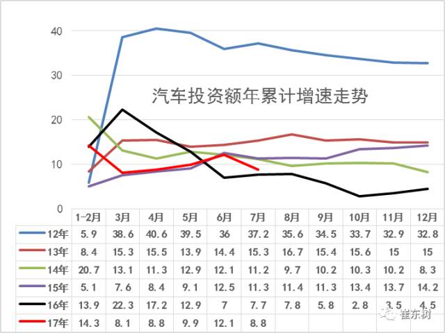1-7月份,全国固定资产投资(不含农户)337409亿元,同比增长8.3%,增速比1-6月份回落0.3个百分点。。。1-7月的汽车投资7162亿元,汽车投资增8.8%的累计增速表现较异常,2季度投资暴增,7月投资下降很大。