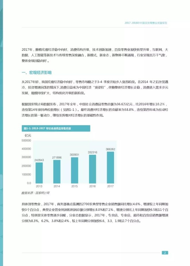 2017年百货零售企业发展情况好转:销售额同比增长9.1%