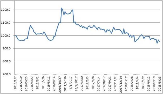 中商情报网讯:本周(2018年8月20日-8月24日),由中国物流与采购联合会和林安物流集团联合调查的中国公路物流运价指数951.93点,环比回落1.40%。