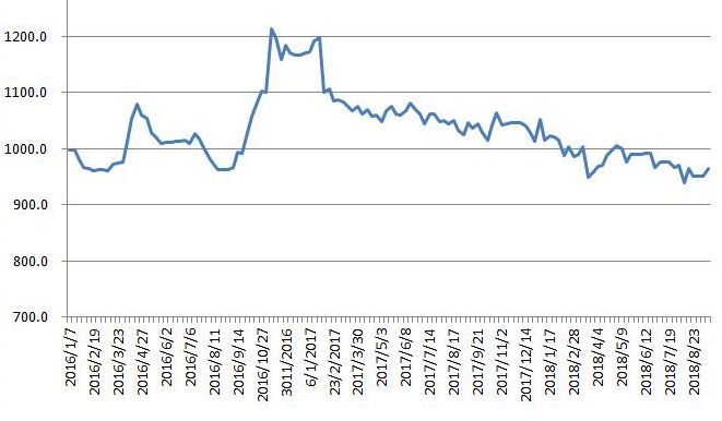 中商情报网讯:本周(2018年9月10日-9月14日),由中国物流与采购联合会和林安物流集团联合调查的中国公路物流运价指数965.46点,环比回升1.42%。