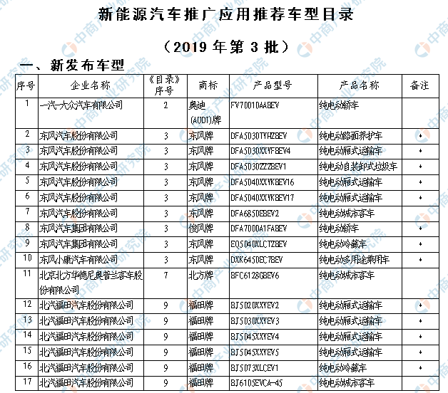 为了更好的推广、应用新能源汽车,发改委发布了2019年第3批《新能源汽车推广应用推荐车型目录》,以下为具体详情: