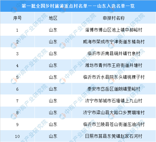 其中山东共有10个乡村入选第一批全国乡村旅游重点村,具体名单如下: