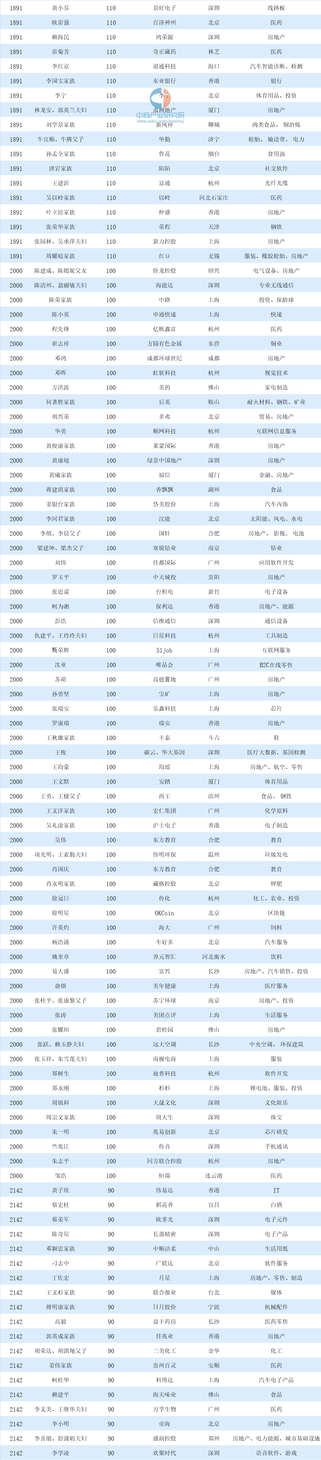 2020胡润全球富豪榜:中国799位企业家上榜(图)