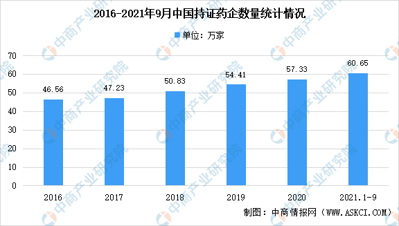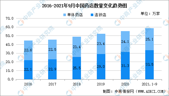 中商情报网讯:近日,国家药品监督管理局发布了2021年第三季度药品监督管理统计报告。截至2021年9月底,全国共有《药品经营许可证》持证企业60.65万家。其中,批发企业1.34万家,零售连锁总部6658家,零售连锁门店33.53万家,单体药店25.12万家。