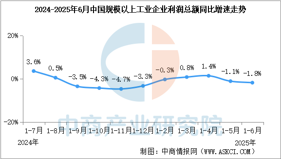 中商情报网讯:1—6月份,全国规模以上工业企业实现利润总额34365.0亿元,同比下降1.8%。