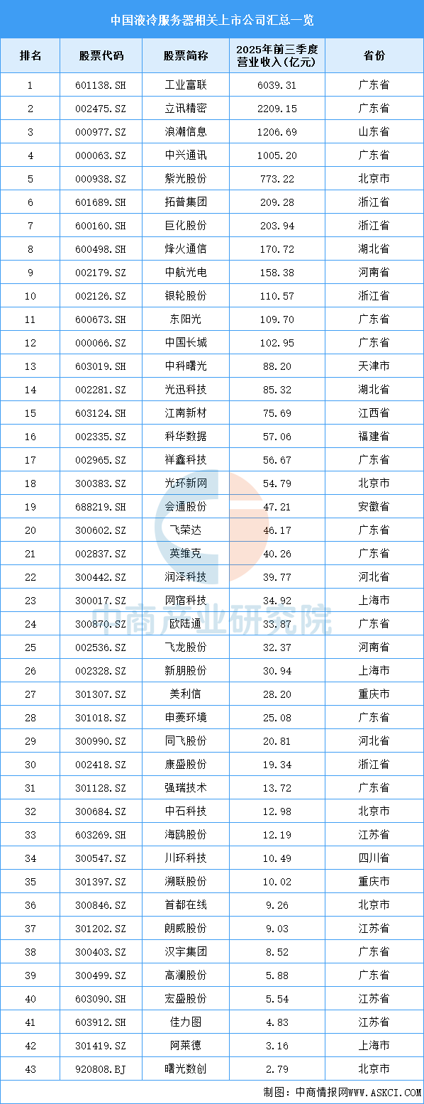 目前,液冷服务器相关A股上市企业主要分布在广东省,共13家。北京市共有5家,排名第二。江苏省和浙江省均为4家,并列第三。