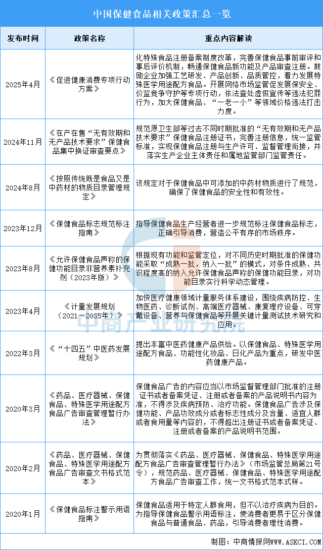 中商情报网讯:保健食品是经“蓝帽子”注册、介于普通食品与药品之间的特殊食品,具备安全优先与功能明确的特点。在人口老龄化、健康消费升级及政策规范的多重推动下,行业持续快速增长。未来,依托科技创新与产品多元化升级,行业有望释放更大潜力,迎来更广阔的发展空间。