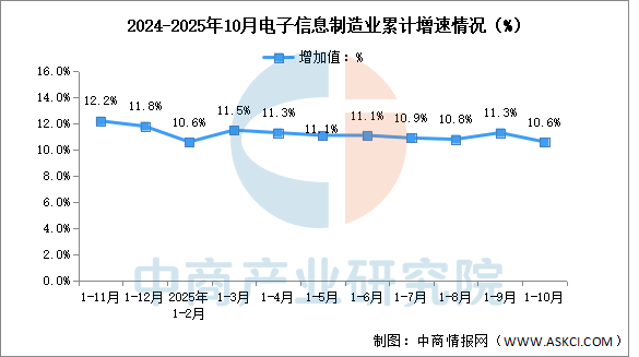 中商情报网讯:2025年1—10月,我国电子信息制造业生产稳定增长,出口小幅回落,效益稳步提升,投资有所下滑,行业整体发展态势平稳。