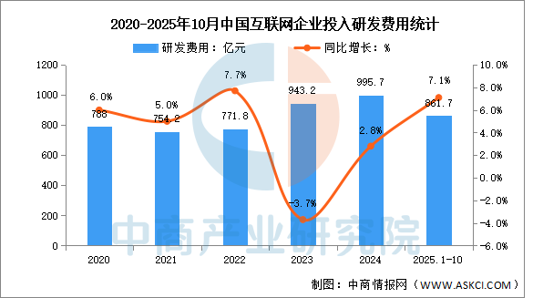 研发经费稳步增长。1—10月份,我国规模以上互联网企业共投入研发经费861.7亿元,同比增长7.1%,增速较前三季度提高了0.5个百分点。