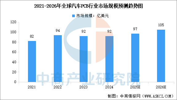 中商情报网讯:随着新能源汽车与自动驾驶技术渗透率的持续提升,汽车领域对PCB的功能需求与应用场景不断拓展,预计将持续驱动全球汽车PCB市场规模增长。中商产业研究院发布的《2025-2030全球与中国PCB市场现状及未来发展趋势》显示,2024年全球汽车PCB行业市场规模达到92亿美元。中商产业研究院分析师预测,2025年全球汽车PCB行业市场规模将达到97亿美元,2026年市场规模将达到105亿美元。