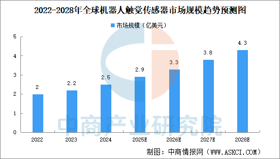 目前全球机器人触觉传感器赛道仍处于发展初期,而国内在该领域的技术实力已领先国际。中商产业研究院发布的《2025-2030全球与中国触觉传感器市场现状及未来发展趋势》显示,2024年全球机器人触觉传感器市场规模2.5亿美元。中商产业研究院分析师预测,未来,精细触觉操控需求将在更多场景延伸,预计2025年全球机器人触觉传感器市场规模将达2.9亿美元,2028年市场规模将达4.3亿美元。