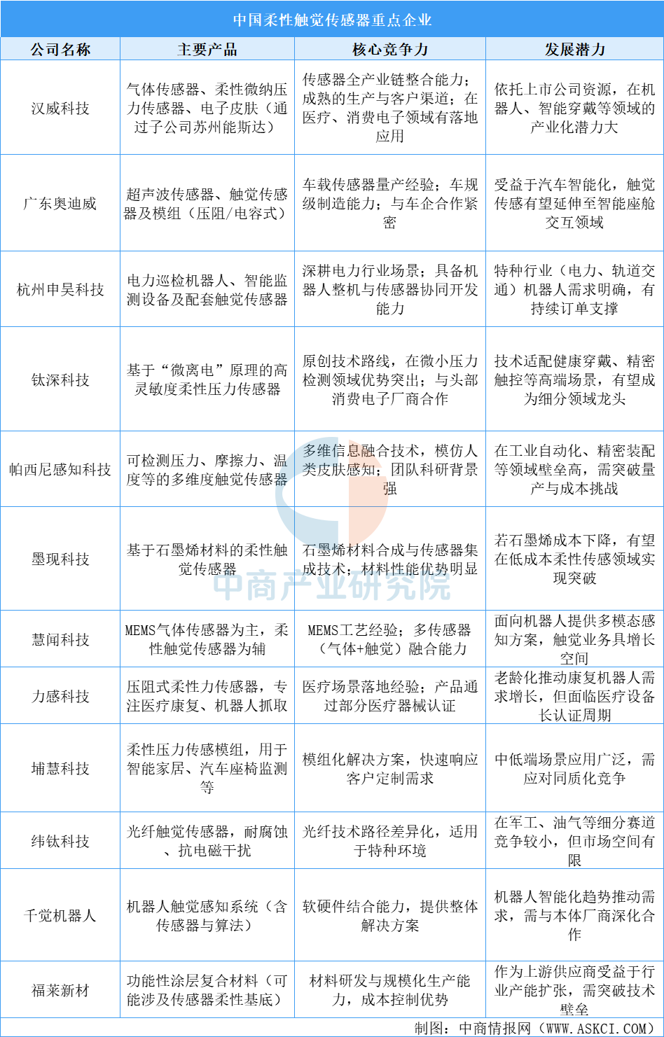 (五)柔性触觉传感器重点企业