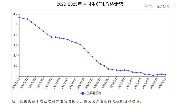 中商情报网讯:2025年11月,生鲜乳收购价环比略跌。国内市场:生鲜乳产能持续优化,加之元旦、春节备货旺季来临,预计后期生鲜乳价格企稳回升。国际市场:大洋洲、南美和北美等地奶产量处于高位,全球牛奶供应充足,加之中东等主要进口地区需求疲软,预计后期国际乳制品价格维持下跌趋势。