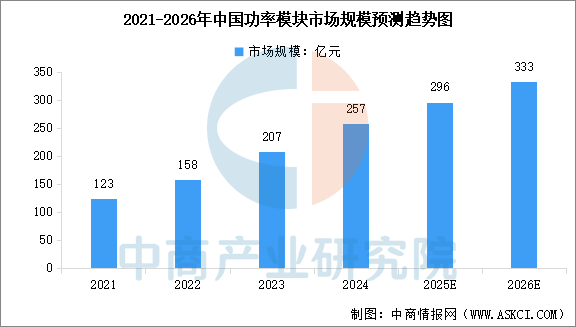 受新能源汽车、工业自动化等新兴产业拉动,中国功率模块市场增长显著。中商产业研究院发布的《2025-2030年中国功率模块行业市场现状调研及发展趋势预测研究报告》显示,2020年至2024年中国功率模块市场规模由85亿元增长至257亿元,复合年增长率达31.7%,远高于全球平均水平。中商产业研究院分析师预测,2026年中国功率模块市场规模将达到333亿元。