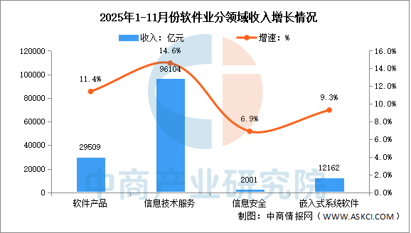 中商情报网讯:2025年前11个月,我国软件和信息技术服务业运行态势良好,软件业务收入稳健增长,利润总额增势放缓,软件业务出口保持正增长。