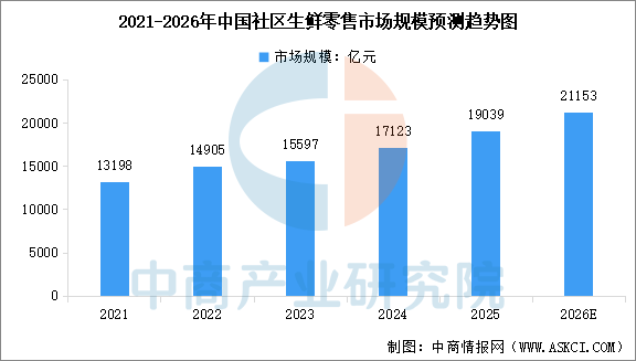 在可支配收入及购买力不断提升、消费者对生活质量和健康饮食的需求持续增长、零售渠道不断丰富及供应链技术不断发展、一系列促进农业农村现代化及食品安全等鼓励政策持续出台的驱动下,中国生鲜零售市场仍有进一步增长的巨大潜力。中商产业研究院分析师预测,2026年中国生鲜零售市场规模将达到72008亿元。