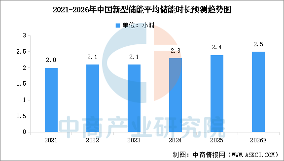 随着对电网支撑能力要求的提升,储能系统放电时长稳步增加。中商产业研究院发布的《2025-2030年中国新型储能市场深度分析及发展前景研究预测报告》显示,截至2024年底,全国新型储能平均储能时长2.3小时,较2023年底增加约0.2小时。中商产业研究院分析师预测,2026年平均储能时长将增长至2.5小时。