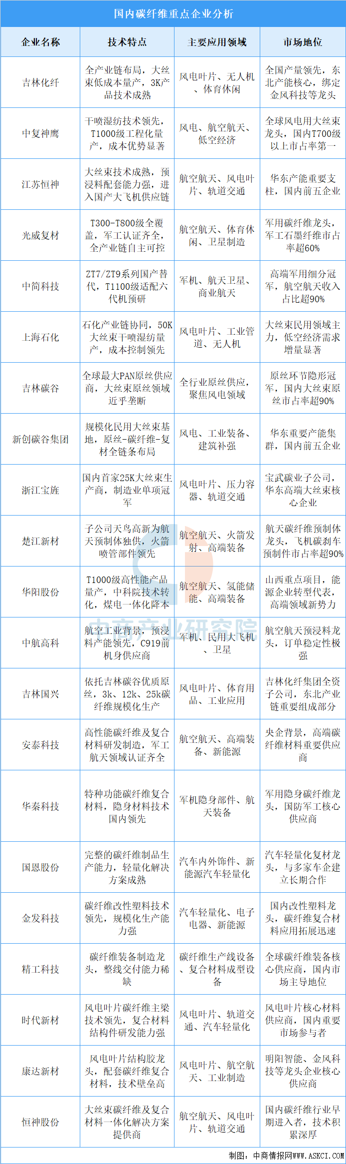 中国碳纤维行业国产品牌凭借全产业链布局、技术突破与成本优势,国产替代率持续攀升,在风电、航空航天、体育休闲等核心领域已形成主导力。中复神鹰、吉林化纤作为综合龙头,产能与市场份额领先;光威复材、中简科技深耕军工高端领域,技术壁垒深厚;精工科技、吉林碳谷等聚焦装备、原丝等细分赛道。本土企业正从通用产品供应向攻克低空经济、氢能储运等高端应用迈进,行业高端化转型与国产替代进程持续深化。