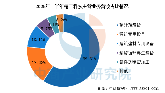 2025年前三季度,精工科技营业收入为13.43亿元,同比增长13.7%,归母净利润为1.45亿元,同比增长98.18%。2025年上半年主营产品中,碳纤维装备营收占整体的59.31%。
