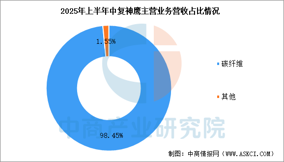 2025年前三季度,中复神鹰营业收入为15.37亿元,同比增长37.39%,归母净利润为0.63亿元。2025年上半年主营产品为碳纤维,营收占整体的98.45%。