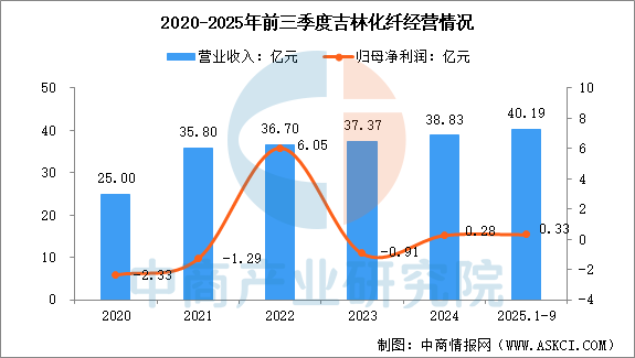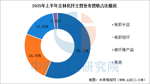 2025年前三季度,吉林化纤营业收入为40.19亿元,同比增长43.62%,归母净利润为0.33亿元,同比下降47.41%。2025年上半年主营产品包括粘胶长丝、粘胶短纤、碳纤维产品,营收分别占整体的56.30%、24.55%、16.83%。