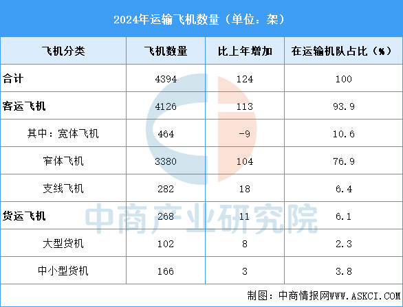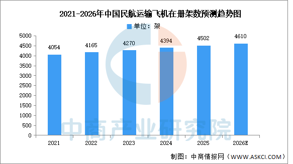 中商产业研究院发布的《2025-2030年中国大飞机现状分析及发展前景投资预测报告》显示,截至2024年底,民航全行业运输飞机期末在册架数4394架,比上年底增加124架,2025年预计将达4502架。中商产业研究院分析师预测,2026年民航全行业运输飞机期末在册架数有望达4610架。