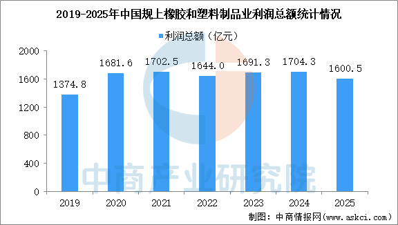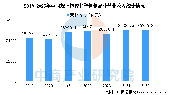2025年1-12月,全国规模以上橡胶和塑料制品业营业收入30200.8亿元,同比下降1.4%;营业成本25419.1亿元,同比下降1.5%;利润总额1600.5亿元,同比下降5.9%。