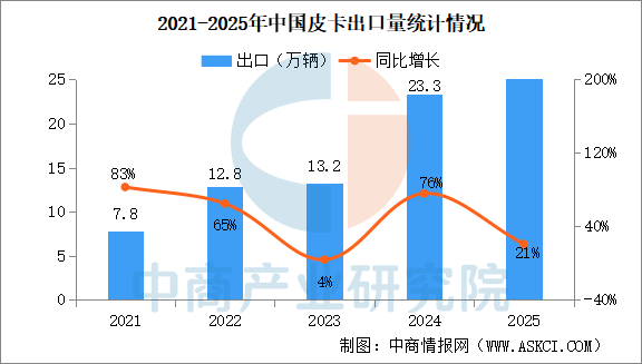 2025年12月全国皮卡出口2.8万辆,同比增长12%,环比下降13%,行业出口占比继续保持高位。1-12月皮卡出口30万辆,同比增长21%。2024年皮卡出口占比皮卡总销量的45%,2025年12月皮卡出口达到54%,2025年1-12月皮卡出口达到50%,中国自主皮卡出口提升较好。