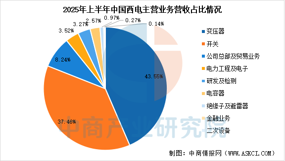 中国西电电气股份有限公司主营业务为输配电及控制设备研发、设计、制造、销售、检测、相关设备成套、技术研究、服务与工程承包等业务。公司主导产品包括全电压等级的高压开关、变压器、电抗器、换流阀、电力电容器、互感器、套管、绝缘子、避雷器等。2025年前三季度,中国西电营业总收入170.04亿元,同比上升11.54%,归母净利润9.39亿元,同比上升19.29%。上半年,公司变压器收入49.35亿元,占比43.55%。