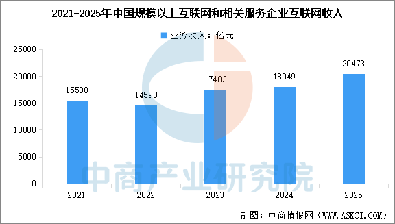 我国互联网业务收入稳定增长,2025年规模以上互联网和相关服务企业完成互联网业务收入20473亿元,同比增长1.5%。2025年,东部地区、中部地区、西部地区、东北地区互联网业务收入分别同比增长2.8%、-22.6%、5.1%、-20%。