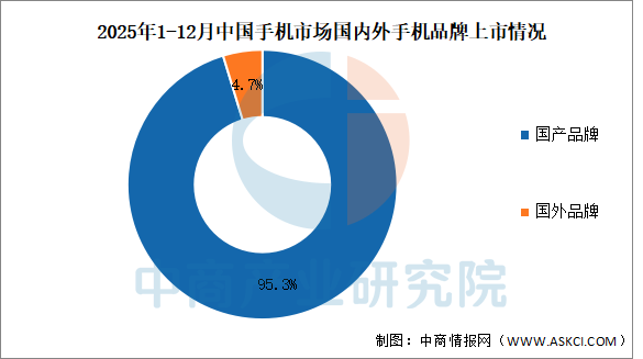 2025年1-12月,国产品牌上市新机型491款,同比增长17.2%,占同期手机上市新机型数量的95.3%。