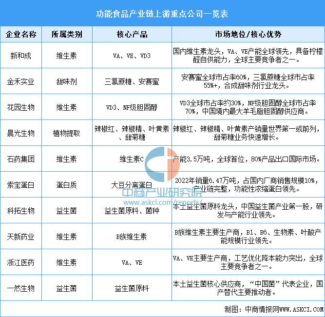功能食品上游原材料市场呈现“龙头集中、国产替代、全产业链布局”三大趋势,中国企业在维生素、益生菌、甜味剂等核心领域已具备全球竞争力。