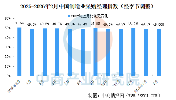 中商情报网讯:2月份,制造业采购经理指数(PMI)为49.0%,比上月下降0.3个百分点,制造业景气水平有所回落。