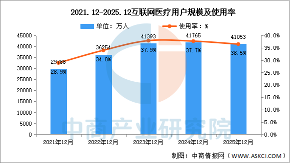 中商情报网讯:截至2025年12月,我国互联网医疗用户规模达4.11亿人,占网民整体的36.5%。