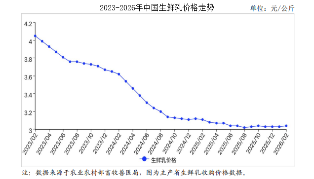 中商情报网讯:2026年2月,生鲜乳价格环比略涨。国内市场:春节过后节日拉动效应减弱,奶牛存栏持续适应性回调,预计后期生鲜乳收购价格趋于平稳。国际市场:全球牛奶产量增加,乳制品供应充足,东南亚、非洲等主要乳制品进口地区需求强劲,预计价格震荡上行。