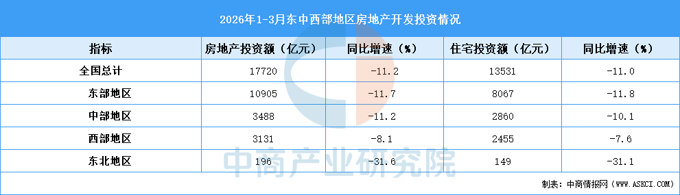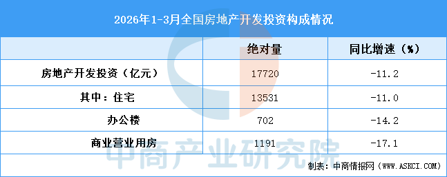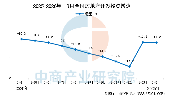 1—3月份,全国房地产开发投资17720亿元,同比下降11.2%(按可比口径计算,详见附注5),降幅比1—2月份扩大0.1个百分点;其中住宅投资13531亿元,下降11.0%,降幅扩大0.3个百分点。