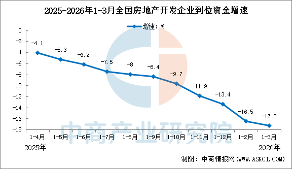 1—3月份,房地产开发企业到位资金20524亿元,同比下降17.3%。其中,国内贷款3419亿元,下降23.7%;自筹资金7762亿元,下降5.3%;定金及预收款5858亿元,下降20.1%;个人按揭贷款2204亿元,下降34.6%。
