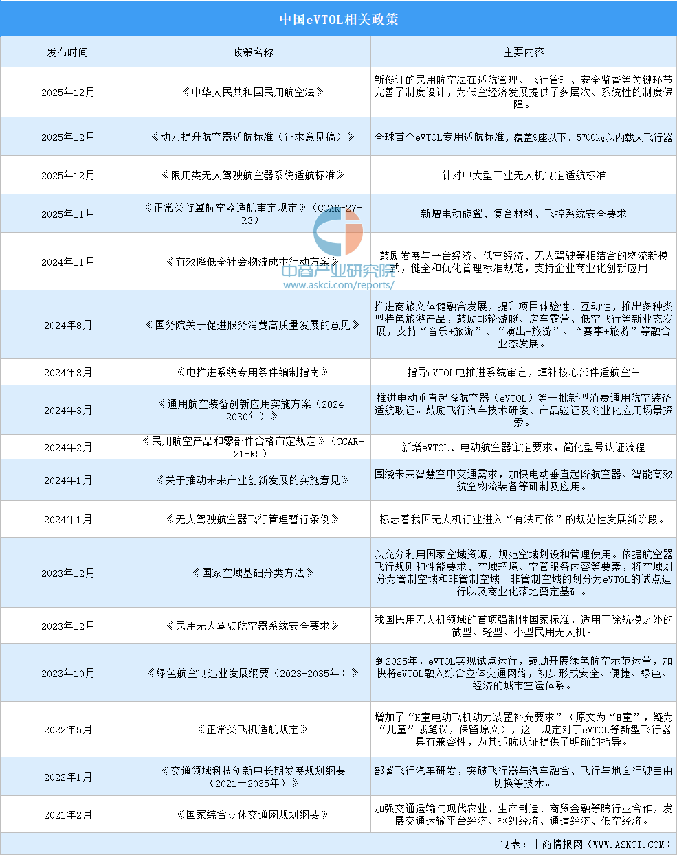 中商情报网讯:中国eVTOL已完成从“技术验证”到“商业化运营”的跃迁,政策、适航、场景、供应链形成闭环优势,在全球赛道中领跑。中国eVTOL行业正处于爆发式增长阶段,未来市场前景广阔。