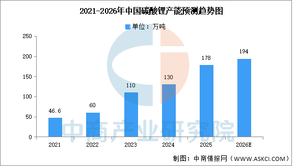 近年来中国碳酸锂产能快速扩张,行业目前正经历产能过剩与结构性的调整。中商产业研究院发布的《2026-2031年中国碳酸锂市场调查与行业前景预测专题研究报告》显示,2025年中国碳酸锂产能达178万吨。中商产业研究院分析师预测,2026年中国碳酸锂产能将接近200万吨。