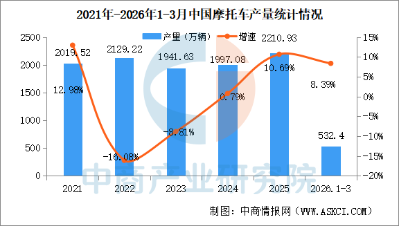 1-3月,正三轮摩托车产销62.37万辆和62.05万辆,产量同比增长0.76%,销量同比下降0.42%。其中,普通货运三轮车产销49.95万辆和49.71万辆,产销量同比下降2.07%和3.04%;普通客运三轮车产销11.86万辆和11.76万辆,产销同比增长13.81%和11.23%。