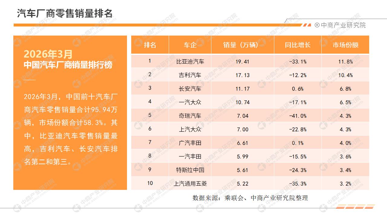 2026年1月中国汽车销量前十企业(集团)排行榜(附榜单)