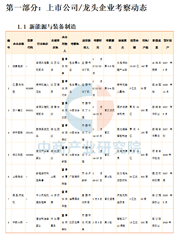 本章节汇总了新能源与装备制造、人工智能与数字经济、生物医药与健康、食品饮料与消费、现代物流与供应链等5大细分行业上市公司/龙头企业考察动态。